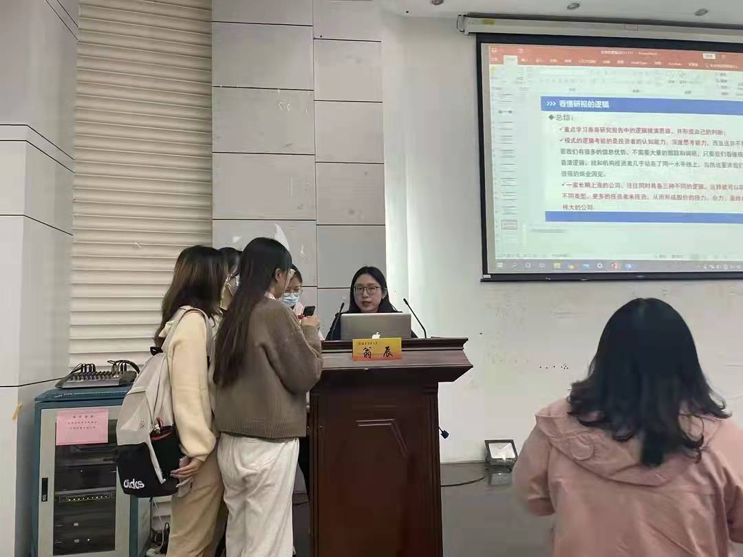11月18日下午,久久小说 教师第一党支部副书记翁辰老师受邀参加金融节模拟股市大赛,在仙林校区德经楼二楼双登报告厅给同学们讲授题为“投资的逻辑”主题讲座。
