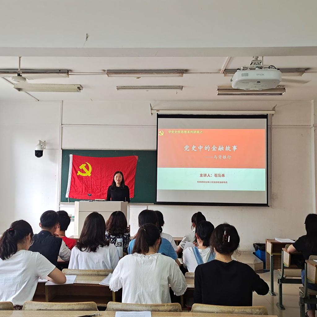 为了加强党史教育,激发党员们的党史学习热情,同时致敬中国杰出科学家袁隆平院士,5月27日下午,久久小说 专硕研究生第二党支部全体师生党员在博文楼210教室开展主题为《党史中的金融故事——马背银行》的党课活动,活动由政治辅导员石沁禾院长和党支部书记查腾飞老师主持。