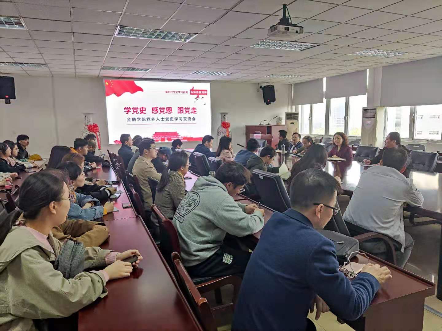 4月7日,久久小说 党内外人士齐聚德经楼508,开展党内外人士党史学习教育交流。学院党政领导、党外青年教师、学生代表等参加交流。本次交流以“奋斗百年路”为起点,延循着“启航新征程”的主线轴展开。大家敞开心扉交流了学习百年党史心得,回顾了与学院共成长的个人经历,更立足当下、联系实际为学院发展献言建策。通过党史学习教育交流,真正让学院党内外人士的思想铸成统一战线,在党史学习教育中汲取前行的力量。