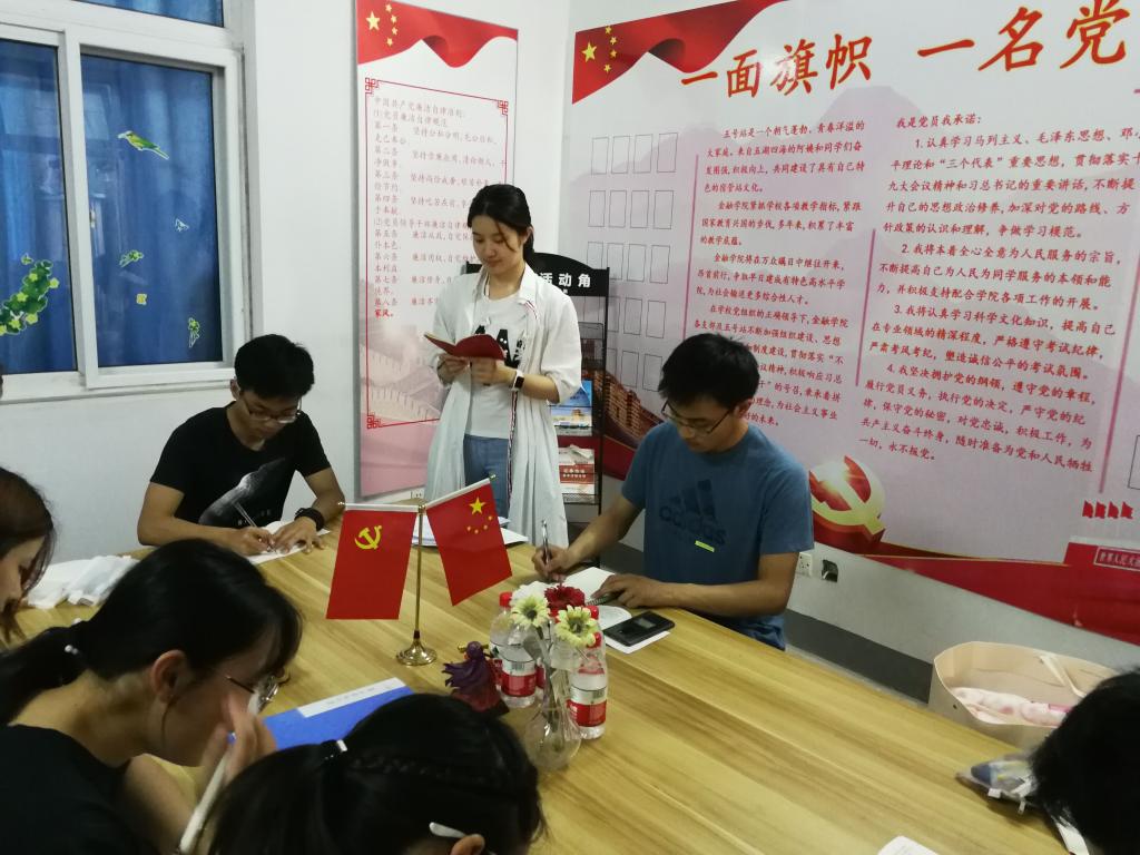 为贯彻落实十九大精神,引导学生党员全面准确掌握党章内容,理解党的纲领,牢记党的宗旨,6月19日下午,久久小说 本科第三党支部组织全体党员在仙林校区五号宿管站久久小说 党员活动角开展“学习党章,知行合一”主题活动。