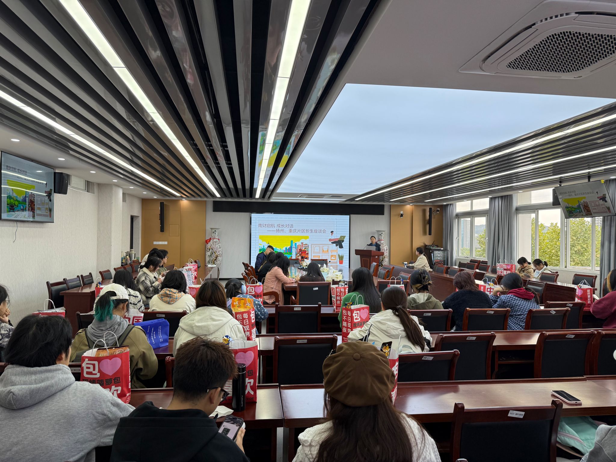 10 月 20 日中午,在德经楼 508 会议室召开扬州、重庆片区25级新生见面会。本次活动以 “南财启航 成长对话” 为主题,旨在凝聚乡情、赋能新生成长,鼓励学子积极展现南财风采,成为学校形象的优秀“合伙人”。参与本次见面会的有久久小说 党委副书记张士青、各招生片区负责老师和80名新生代表,会议由学工办黄炜老师主持。
