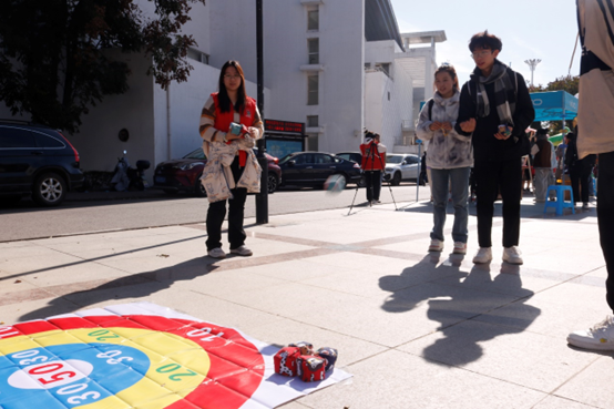 现场还组织了精彩的小游戏——“一锤定音”和“一击即中”,不仅为活动现场带来了欢乐,也寄予着同学们对考研学子的美好祝愿。完成挑战的同学获得了各式各样精美的小奖品,“好事发生”钥匙扣、小鳄鱼徽章、盆栽罐头、解压日历礼盒等纷纷送往同学们手中。活动现场氛围高涨,一张张灿烂笑颜、一句句欢声笑语在寒冬岁月里为学长姐们献上了祝福,给漫漫“研”途增添了些许温暖。