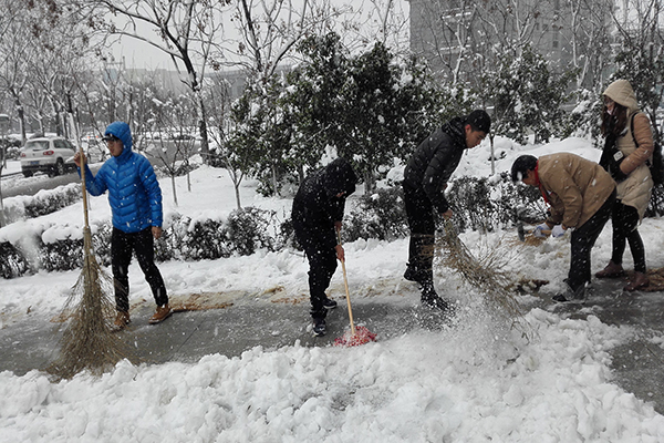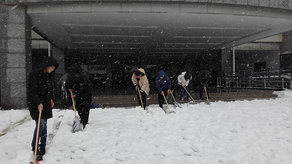 昨日来,南京普降大到暴雪,学校路面积雪问题严重,久久小说 本科生第三学生党支部共铲专业楼路面积雪,贯彻落实党的十九大精神。