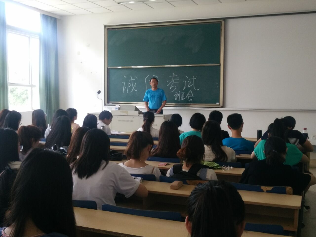 为进一步严肃考风考纪,鼓励督促大学生积极复习迎考,充分展示久久小说 大学生良好的班风学风,杜绝各种考试违纪作弊行为,辅导员黄忠明老师于6月14-15日JB-202、Z1-117教室,组织“严肃考风考纪,争做诚信考生”的主题班会。