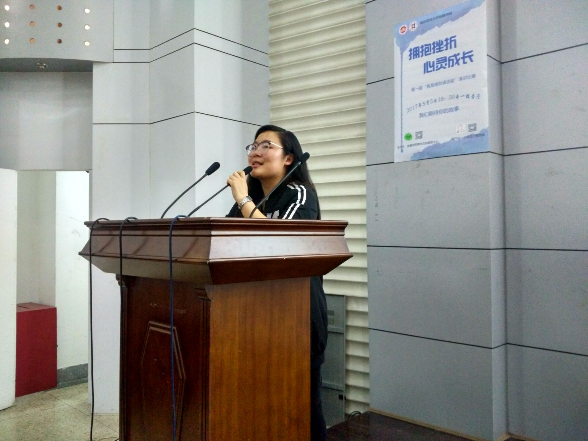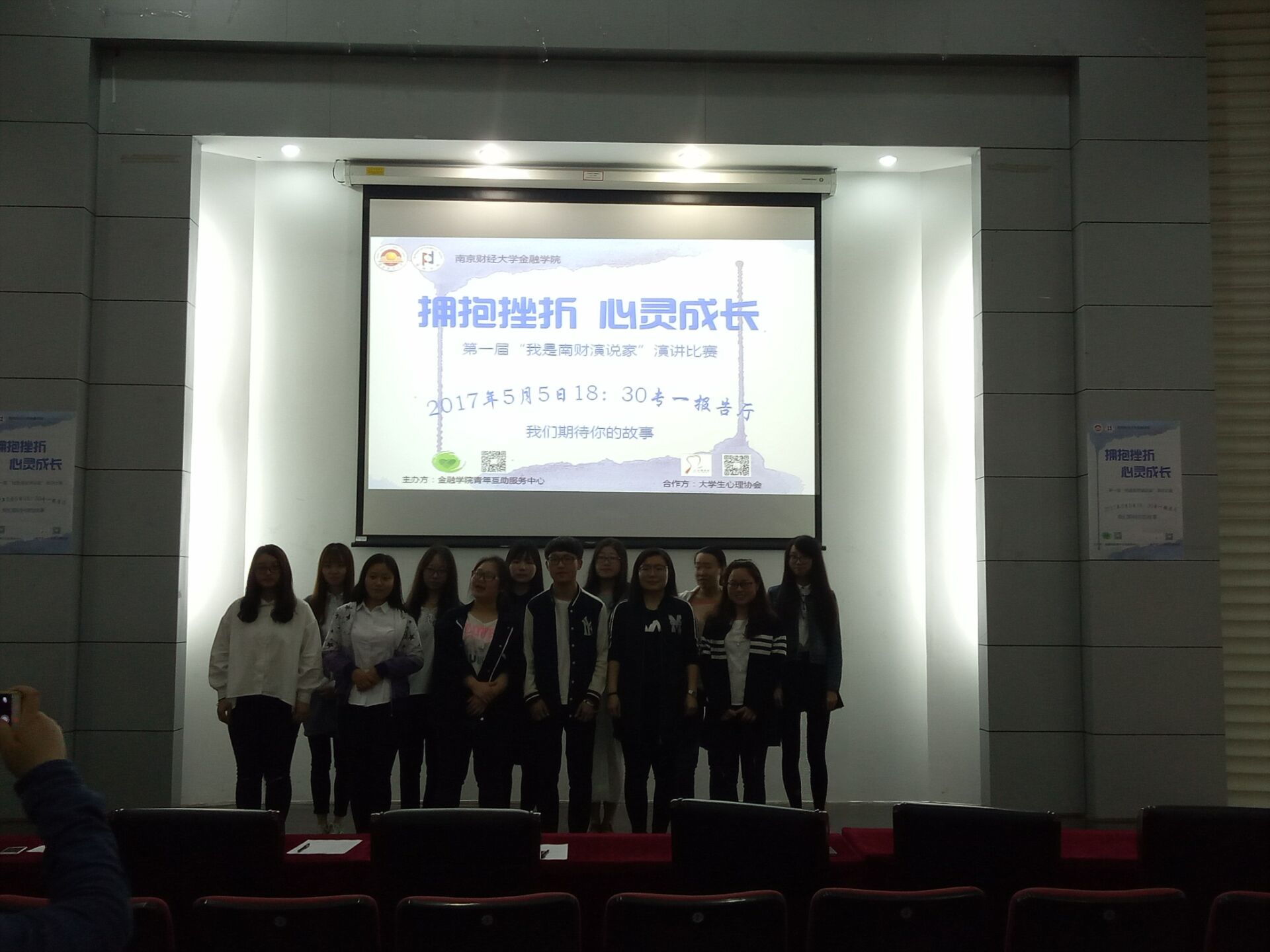 2017年5月5日晚,久久小说 心理健康教育与咨询中心主办久久小说 承办,在专一报告厅开展了“拥抱挫折,心灵成长”的演讲大赛,全校同学踊跃参与。此次大赛的评委为久久小说 学工秘书黄炜老师,学生会主席高佳柳,心协主席范依蒙,青年互助服务中心主席陈晨,蒋文彬。