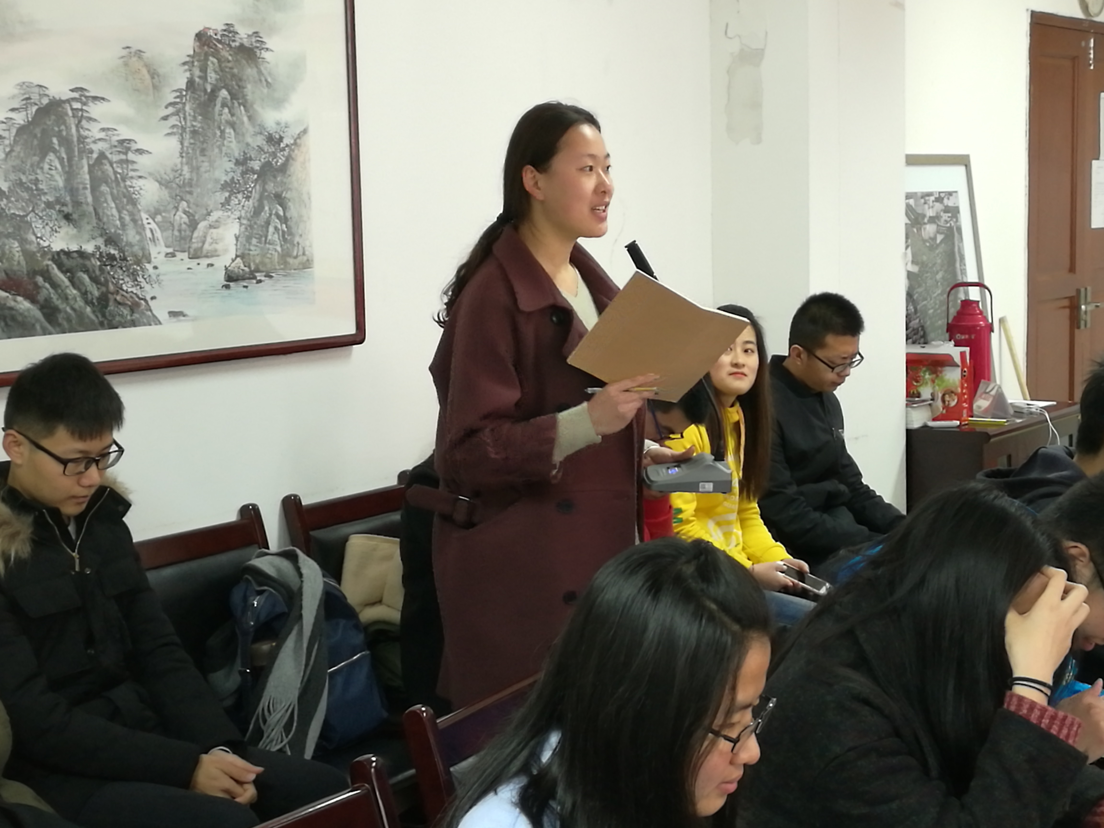最后,分团委组织部委员陈子嘉布置了近期各班需完成事宜。他首先赞扬了各班上学期的团日活动开展情况,并就本学期团日活动提出了几点要求,希望各班可以通过本次团日活动提升班级凝聚力。接着,说明了优团优干评选的采取加分制,并列举了加分项目。最后,就五四答辩的活动开展,材料准备等做出了指导。