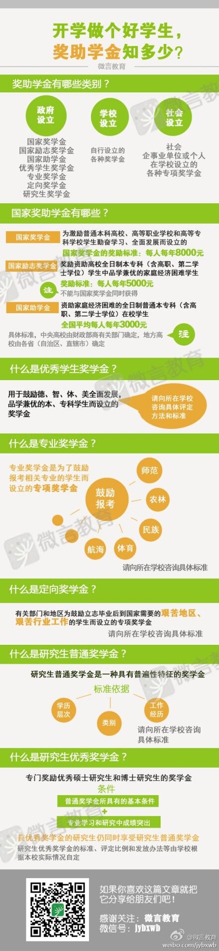 随着我国各高等院校陆续开学,为了不让每一位学生因家境困难而退学,教育部官方新浪微博@微言教育发布了大学新生可申请的奖助学金项目,以方便大学新生了解我国助学政策。