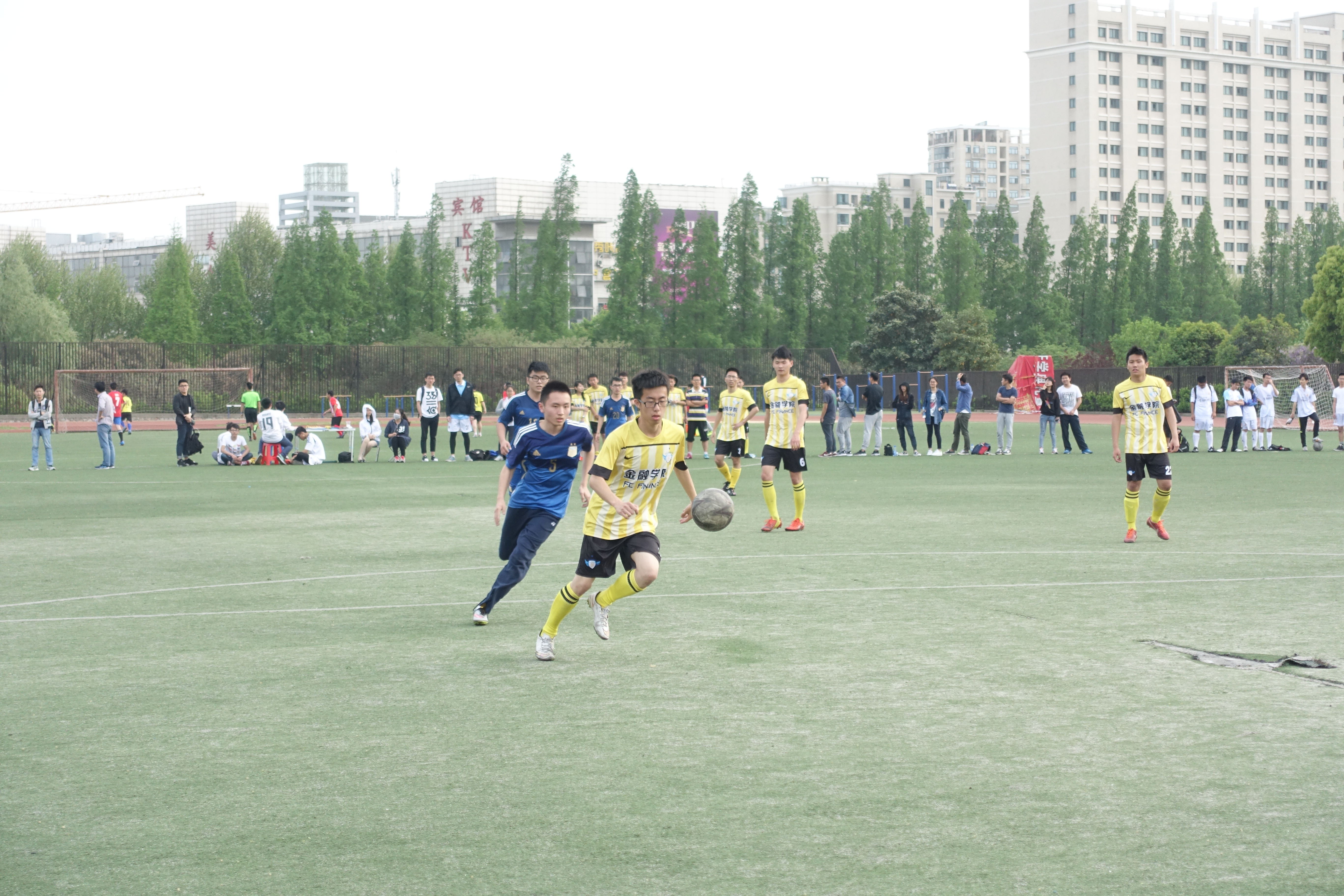 第一场对抗研究生的小组赛在4月12日下午3:00于西苑足球场进行。通过激烈的比拼,最终金融队以1:2的一分之差输给研究生队。在上半场的比赛中,研究生队多次猛攻,但金融队防守得当使得研究生没有得分。经过半场休息调整,下半场比赛开赛不久,久久小说 22号便用一脚弧线球直进球门死角,获得了本场比赛的首分,比赛也变得越来越激烈。在下半场开始十五分钟时,研究生队10号一脚长传,前锋成功射门,此时比分1:1。在最后的补时阶段,研究生队10号中场一脚低射直入球门,获得关键一分。最后,久久小说 以一分之差惜败研究生队。