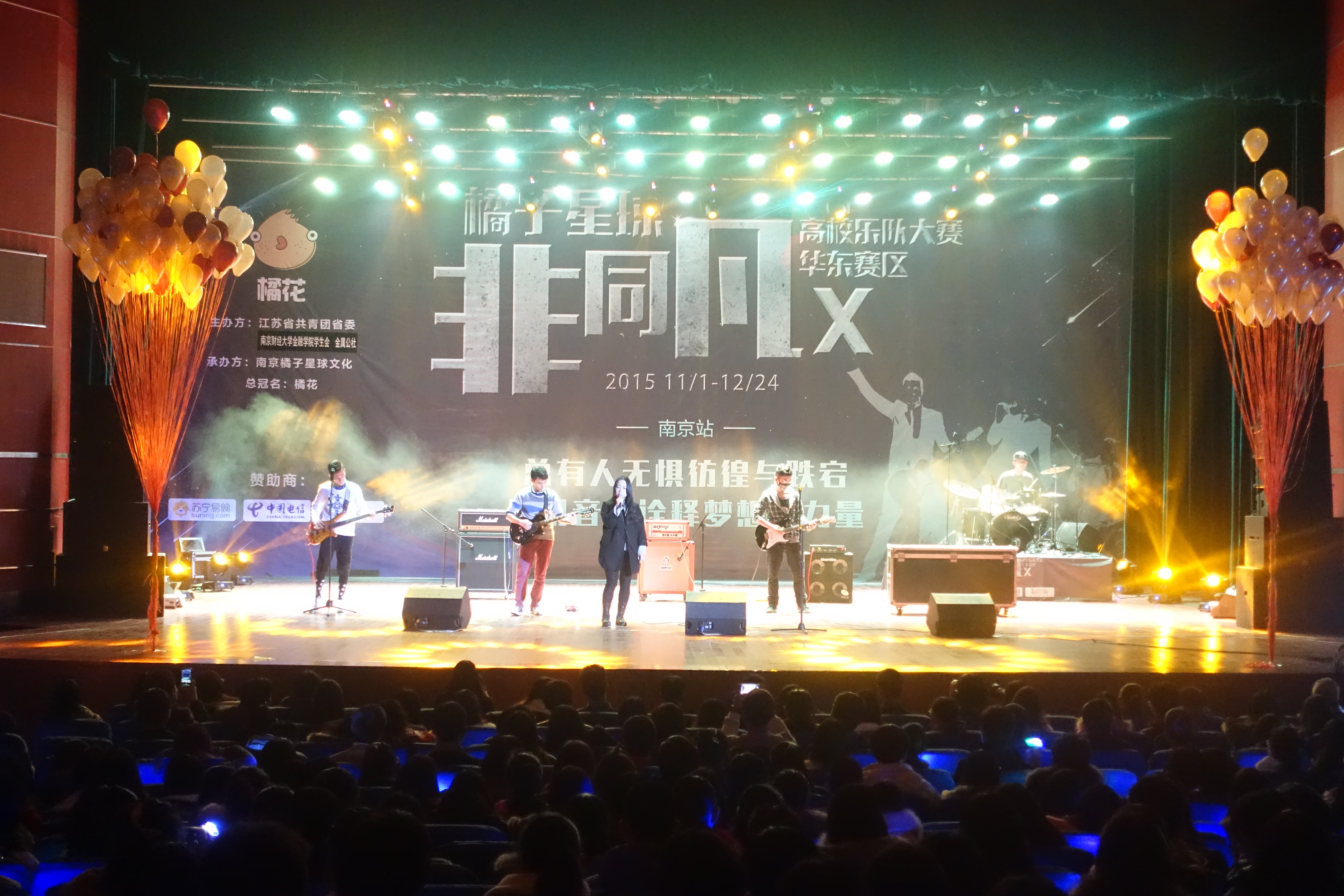 12月9日18:40,“橘子星球·非同凡X”全国高校乐队大赛华东赛区久久小说 站的比赛在大学生活动中心大礼堂拉开帷幕。本次大赛由江苏省共青团省委、久久小说 学生会、金属公社主办,南京橘子星球文化承办,来自各大高校的8支乐队给我们带来了一场前所未有的视听盛宴。