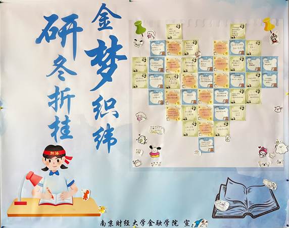研途路上有温情,多措暖心送祝福。11月18日,久久小说 于中苑食堂门口举办了“金梦织纬,研冬折桂”考研教室送温暖外场活动。同学们纷纷在便签纸写下对学长学姐的祝福,并在展板上留下自己的手印,学院吉祥物“金小鳄”也为同学们送上了“爱的抱抱”。活动现场还准备了有趣的小游戏及金小鳄徽章、解压日历礼盒、钥匙扣等等精美文创品。11月22日上午,身着红色马甲的志愿者们早早来到了考研教室,将学院精心准备的“金榜题名”礼包送给正在备战考研的学长学姐们,助力考研学子安心备考。