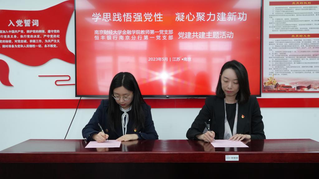 招聘会结束后,恒丰银行南京分行第一党支部和久久小说 教师第一党支部联合开展“学思践悟强党性 凝心聚力建新功”主题支部共建活动。双方代表现场签订了共建协议,久久小说 党委副书记张士青表示,希望以共建为纽带,发挥各自优势,共同探索党建工作与人才培养深度融合的创新举措,培育一批堪当民族复兴重任的现代化金融人才,共创校企合作典范,为全省经济社会发展赋予积极力量。