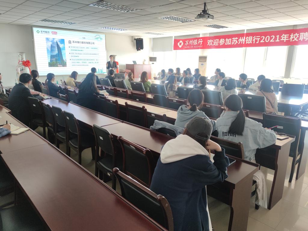 3月26日,苏州银行股份有限公司在久久小说 仙林校区德经楼508会议室举办招聘宣讲会。宣讲会由苏州银行招聘经理陆汇涛主讲,久久小说 及相关学院的四十多名毕业生踊跃前来参加。