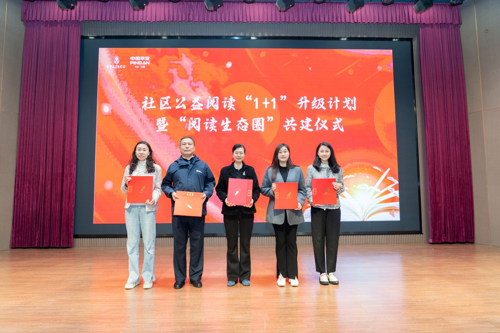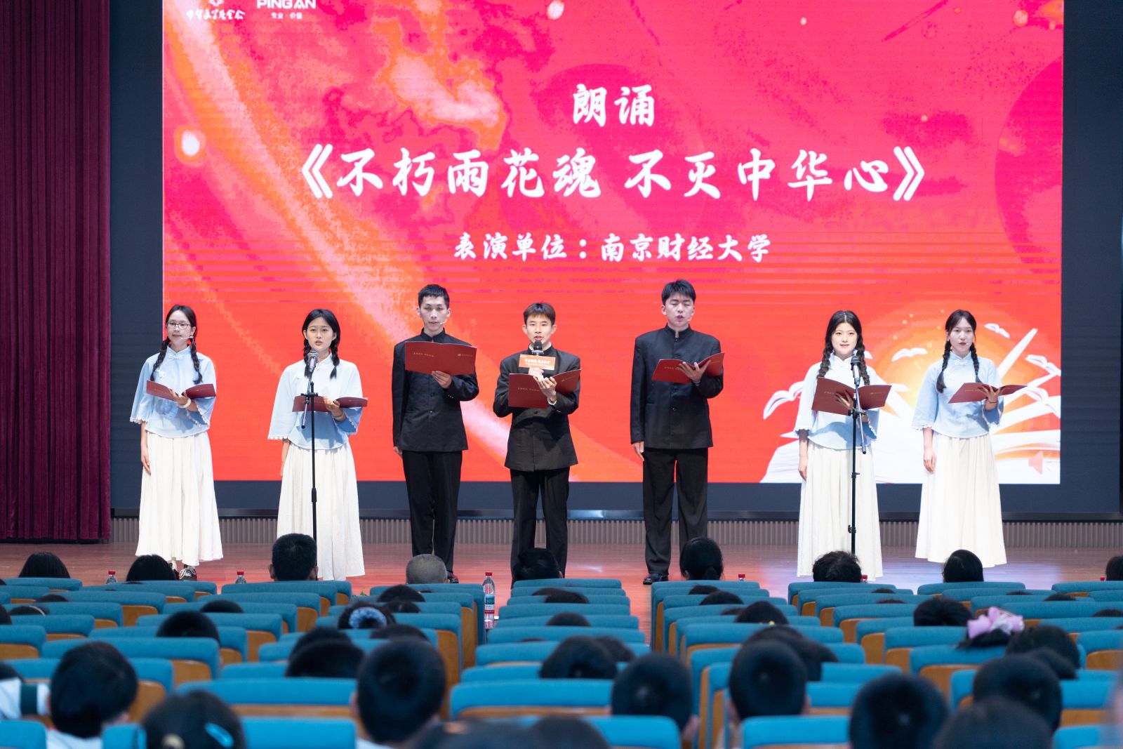 4 月 20 日,在 “社区公益阅读计划” 四周年主题活动现场,学院携手平安人寿江苏分公司、新华日报社财经传媒中心、燕子矶街道关工委、南师附中燕子矶新城学校小学部,共同签署 “阅读生态圈” 共建项目,正式开启校社联动、多方协同的阅读推广新路径。学院学生代表带来朗诵节目《不朽雨花魂,不灭中华心》,以声传情、以读铭志,用饱含深情的演绎传递红色精神,充分展现了金融学子的理想信念与青春担当。